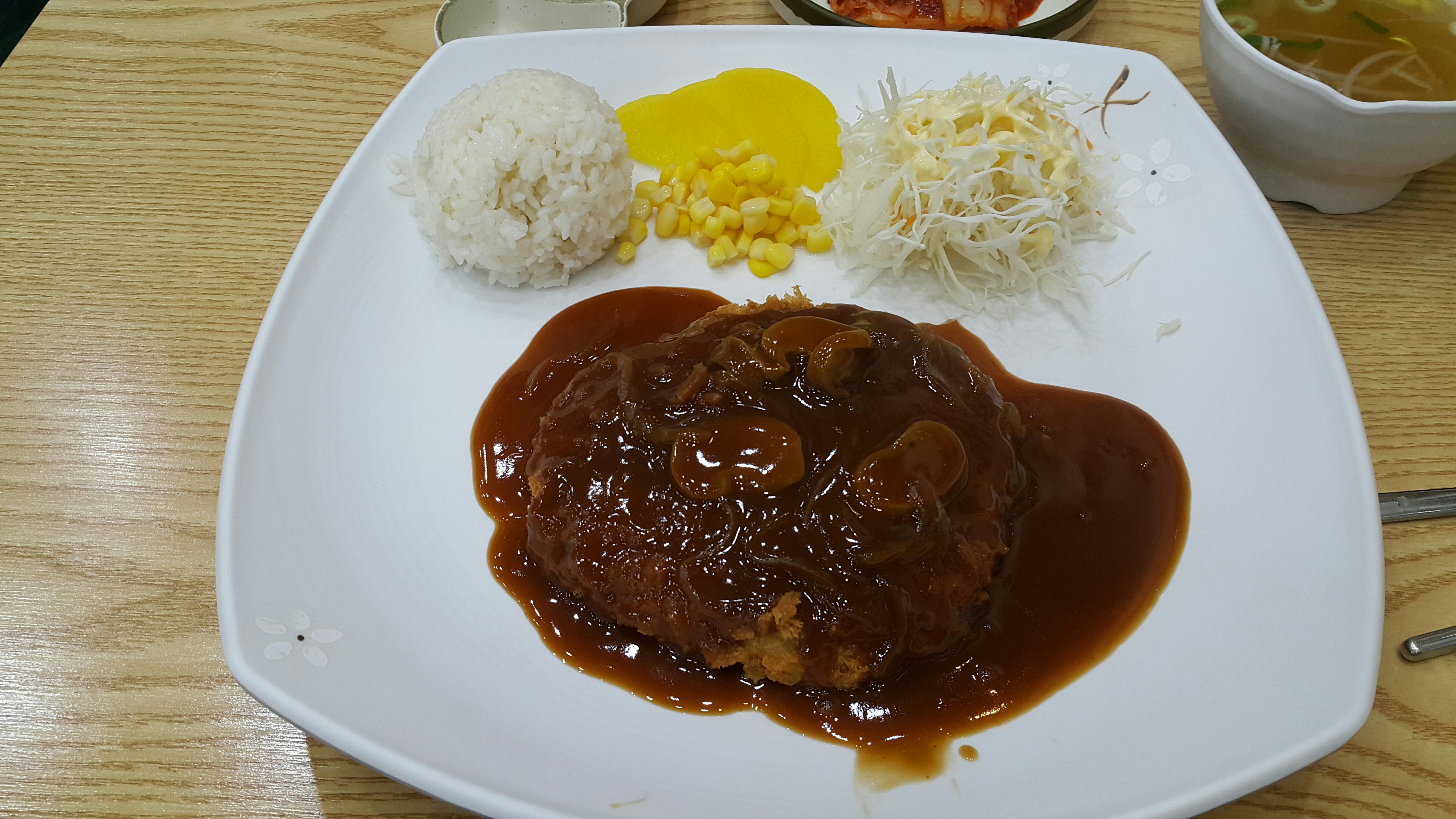 돈가스는 냉동 돈까스 튀긴 것은 아니고 도톰한 수제 돈가스에 소스 올려 나온 거라 먹을 만하다.