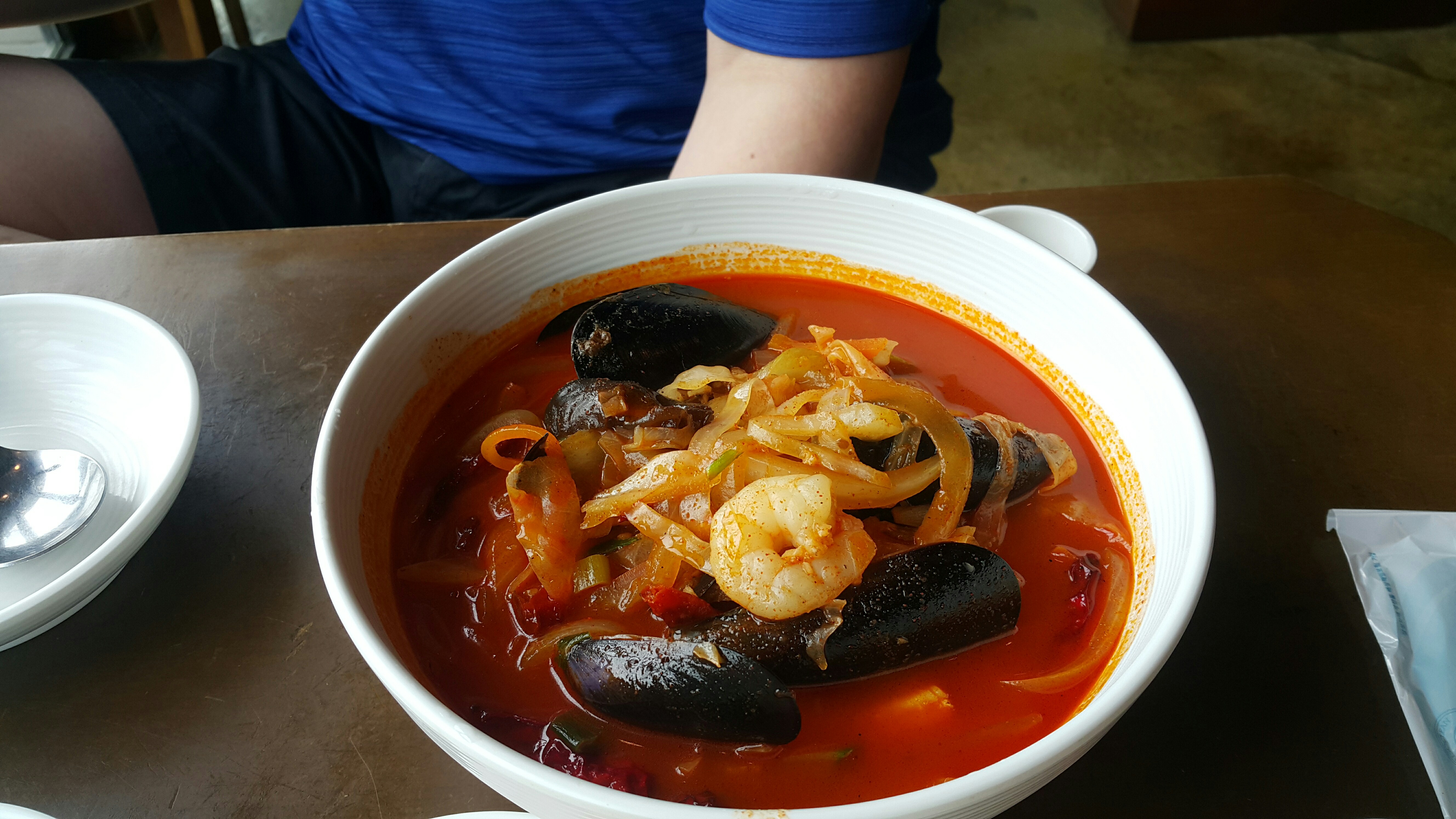 짬뽕은 색깔에 비해 많이 매운 편은 아니고 해산물이 많이 들어가서 시원하고 칼칼한 국물의 짬뽕 나쁘진 않다.